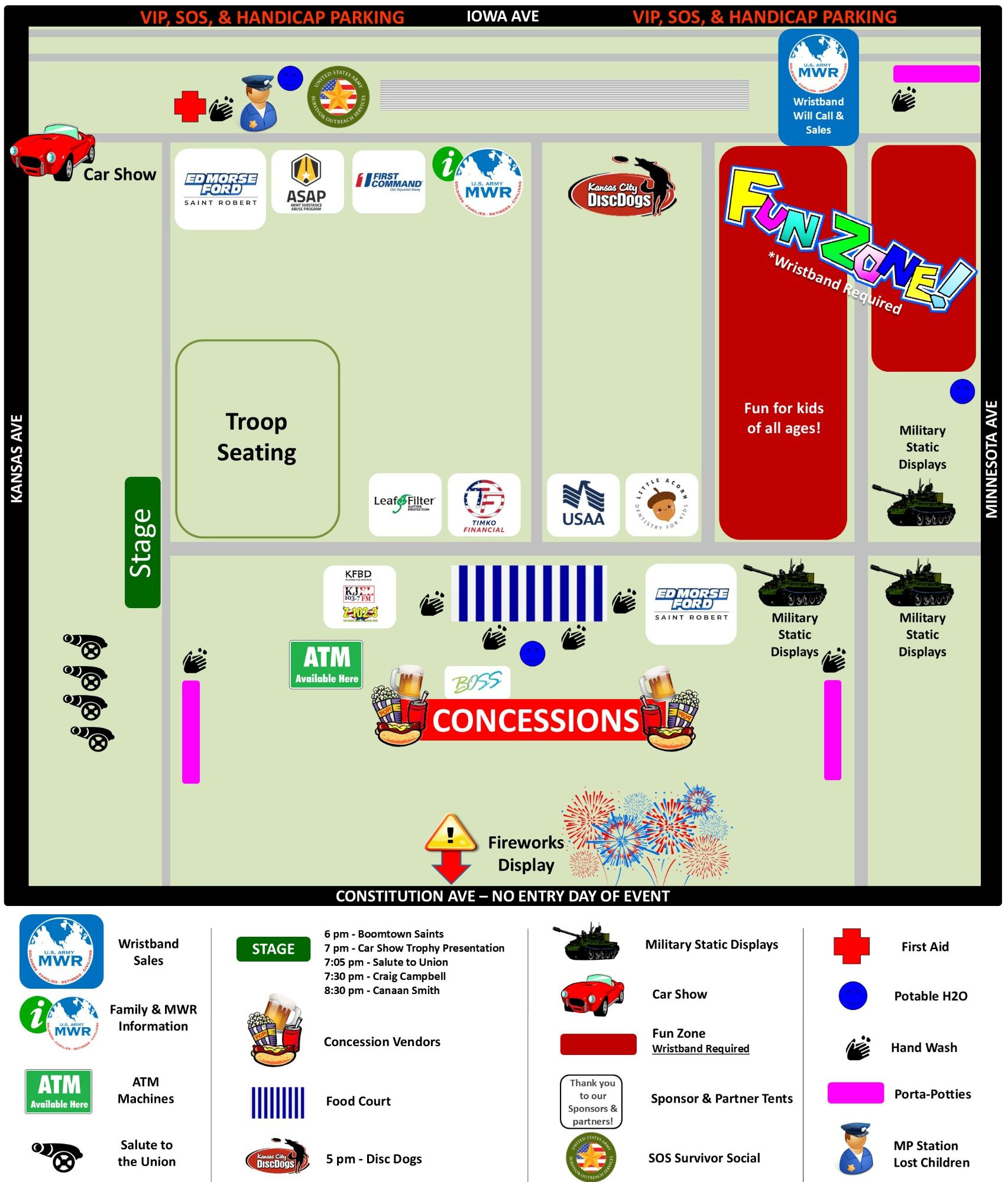 - 7 pm: Car Show Trophy Presentation (stage)
