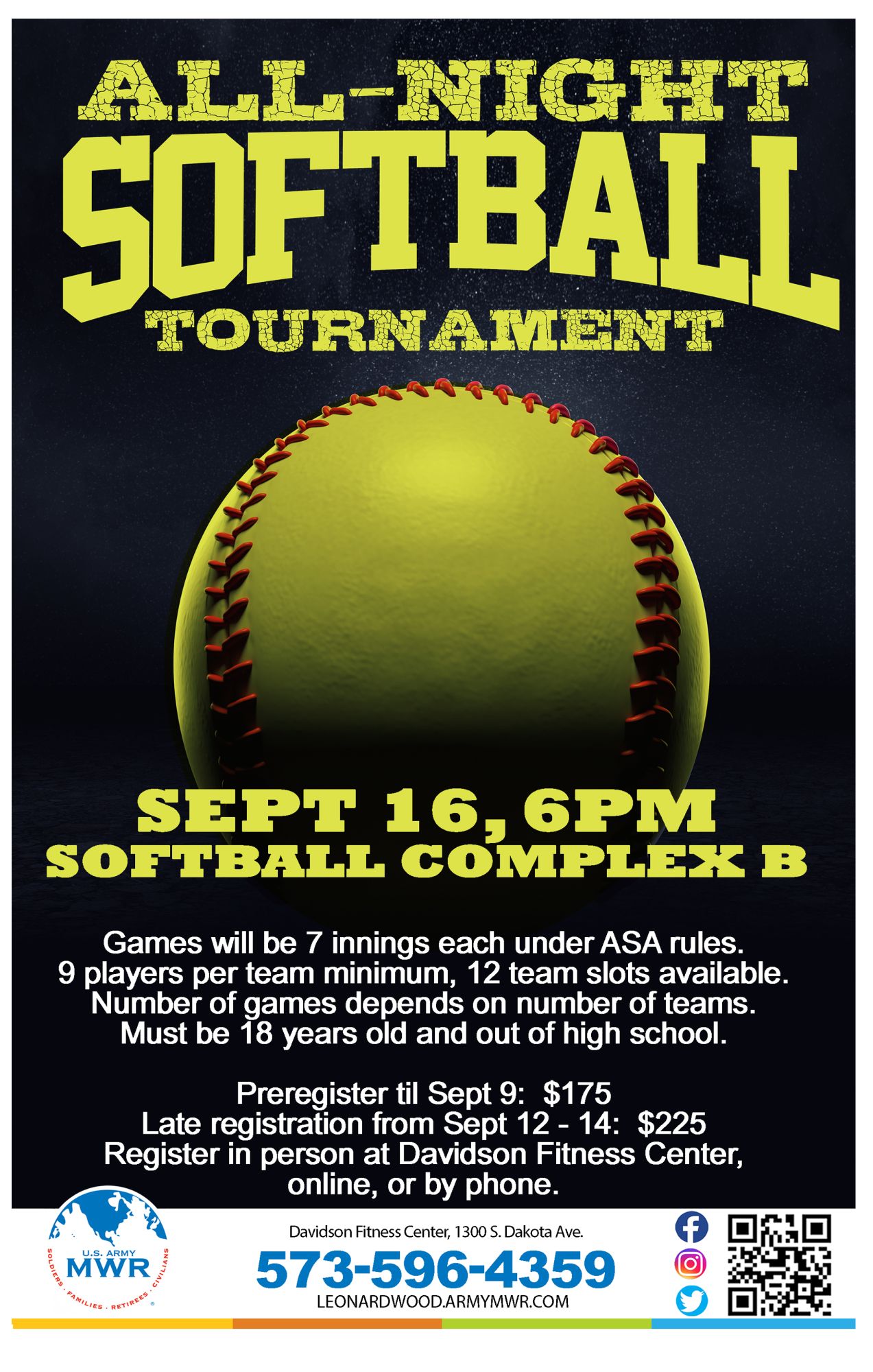 Join us for some all-night competition! The All-Night Softball Tournament will be held at Softball Complex B.