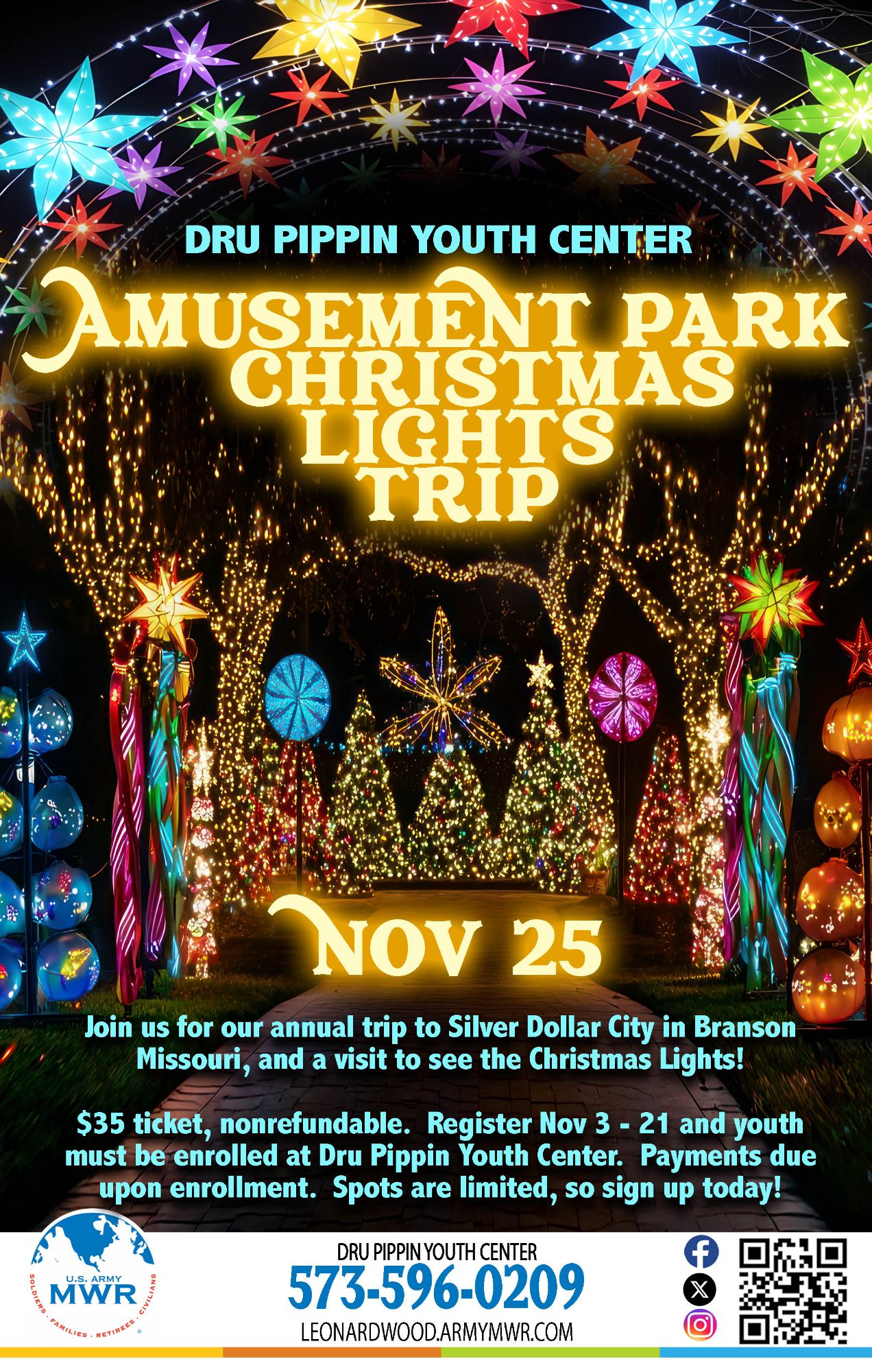 Join Dru Pippin Youth Center for a trip to Silver Dollar City in Branson, MO to see the Christmas lights!