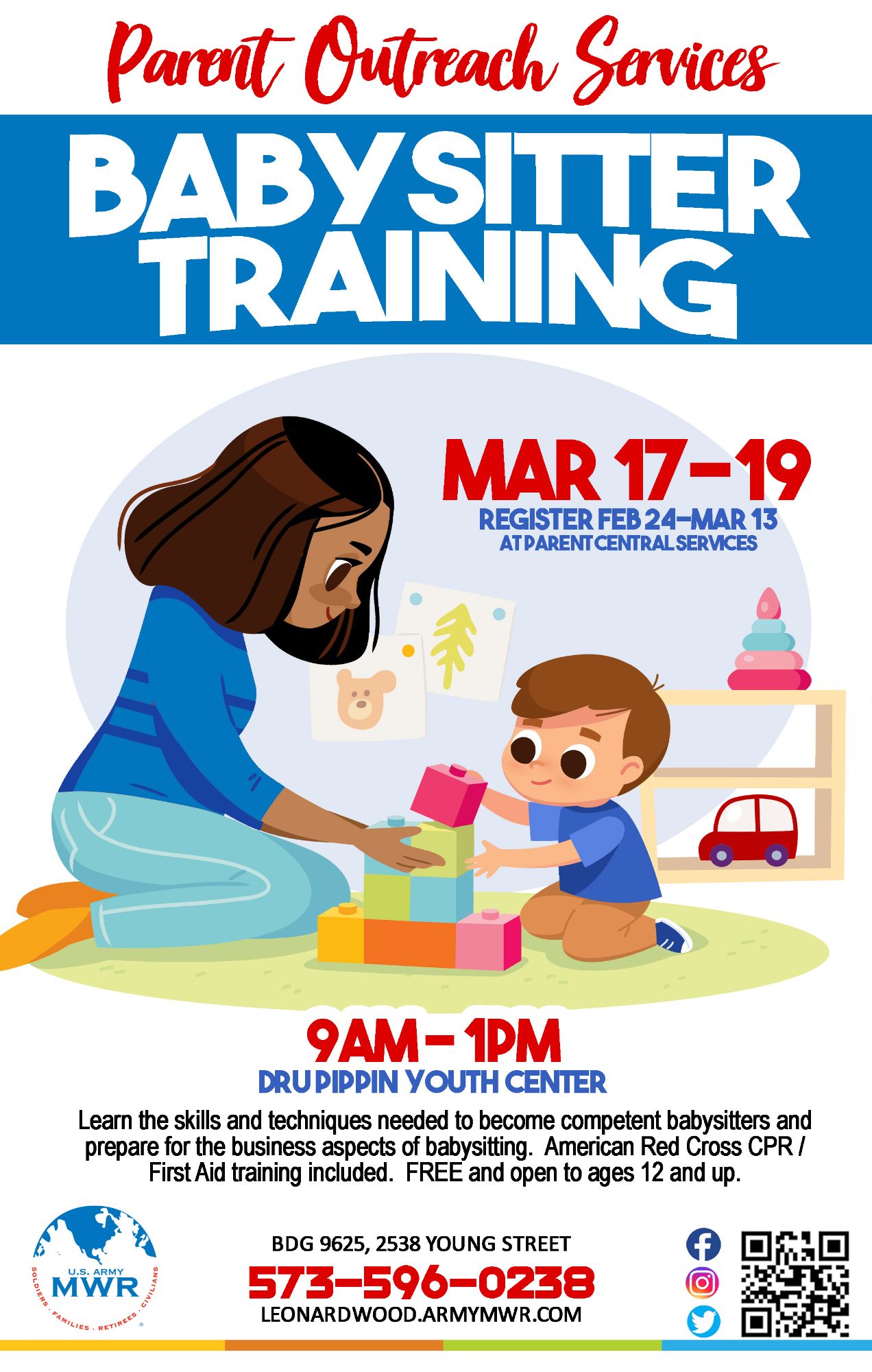 Babysitter Training will be held at Dru Pippin Youth Center from 17-19 March.
