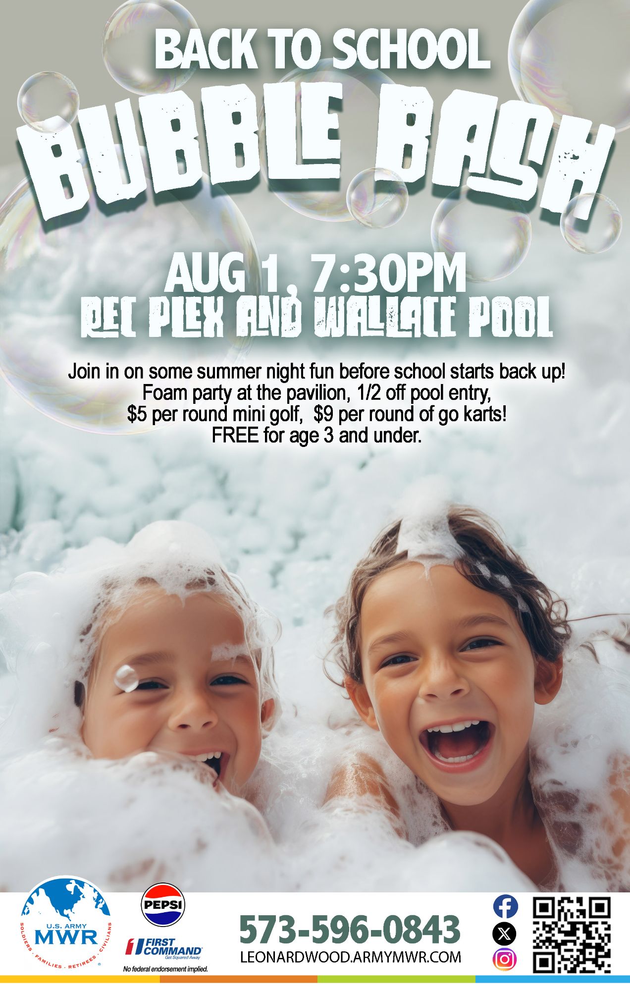 Enjoy a fun summer night at the Back to School Bubble Bash!