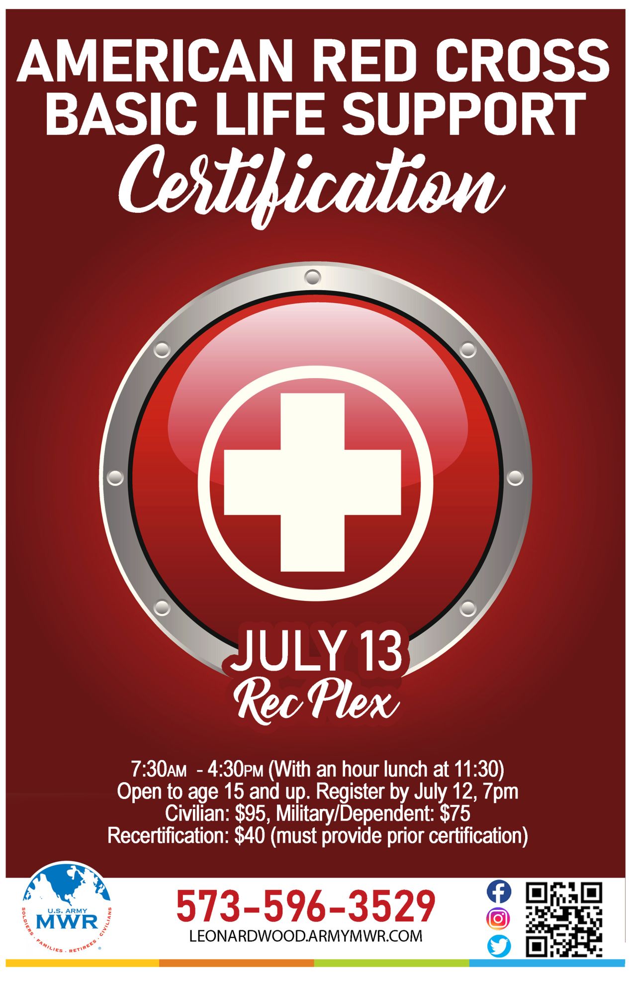 Join us at the Rec Plex to earn your American Red Cross Basic Life Support Certification.