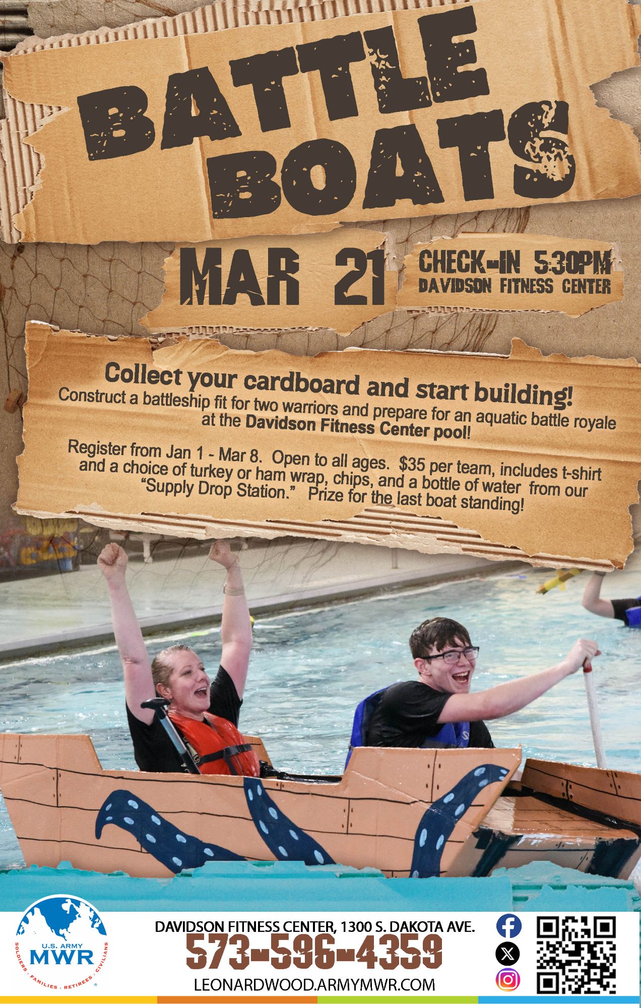 Collect cardboard and start building! Battle Boats will be taking on DFC Indoor Pool!