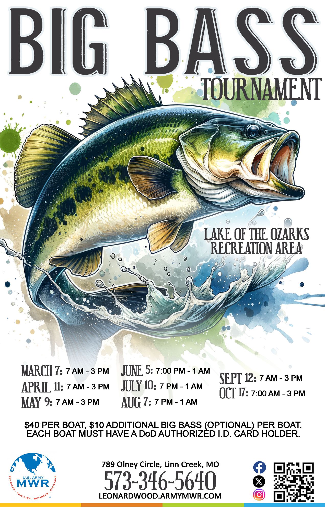 Join us at the Lake of the Ozarks Recreation Area for our Big Bass Tournaments!