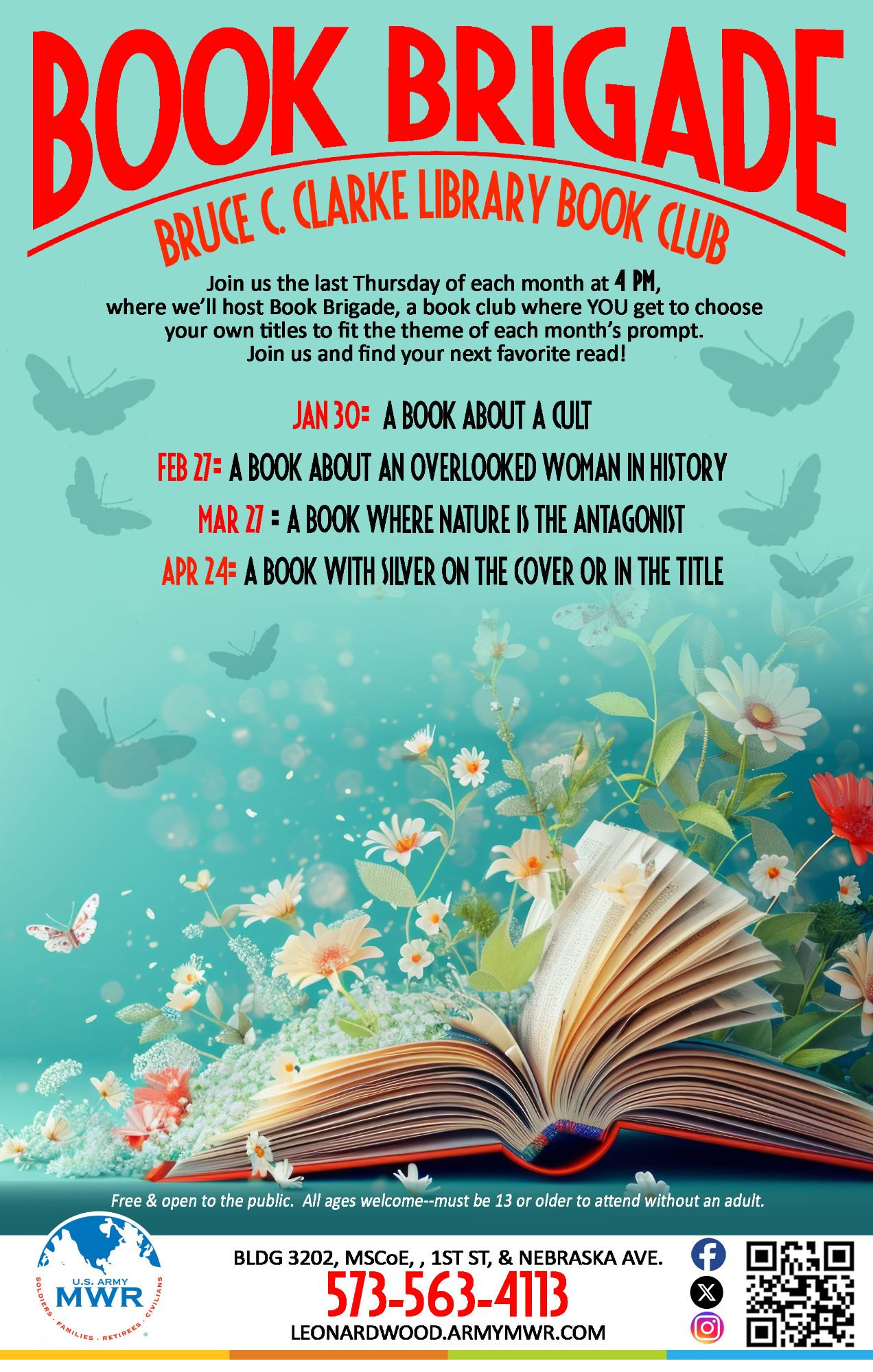 Join Bruce C. Clarke Library the last Thursday of each month for the Book Brigade! This book club is designed to let YOU choose your own titles to fit the theme of the monthly prompts.