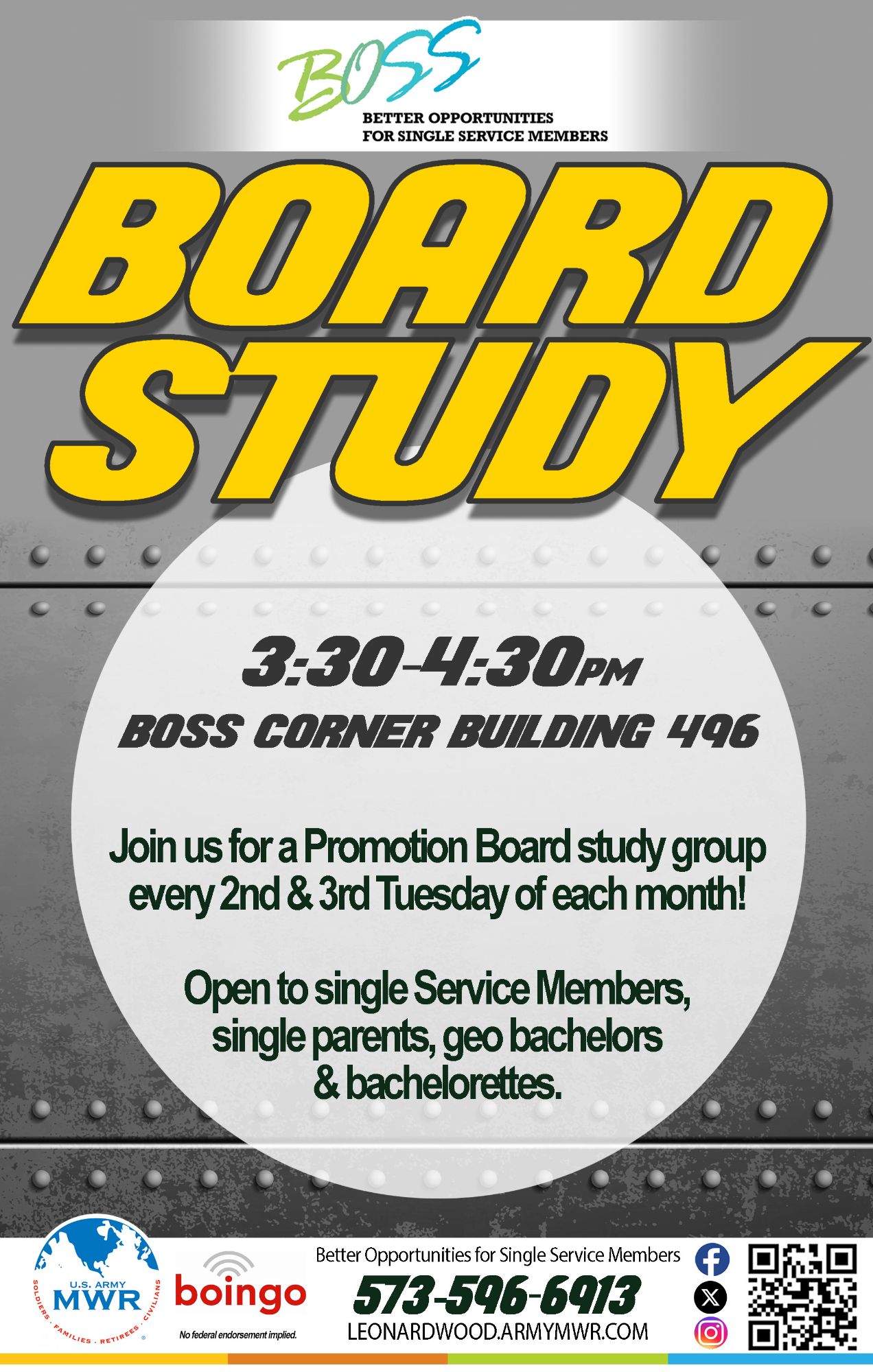 Join us for a study group for those who would like help preparing for a promotion board, Soldier/NCO of the Month board, or competition board.