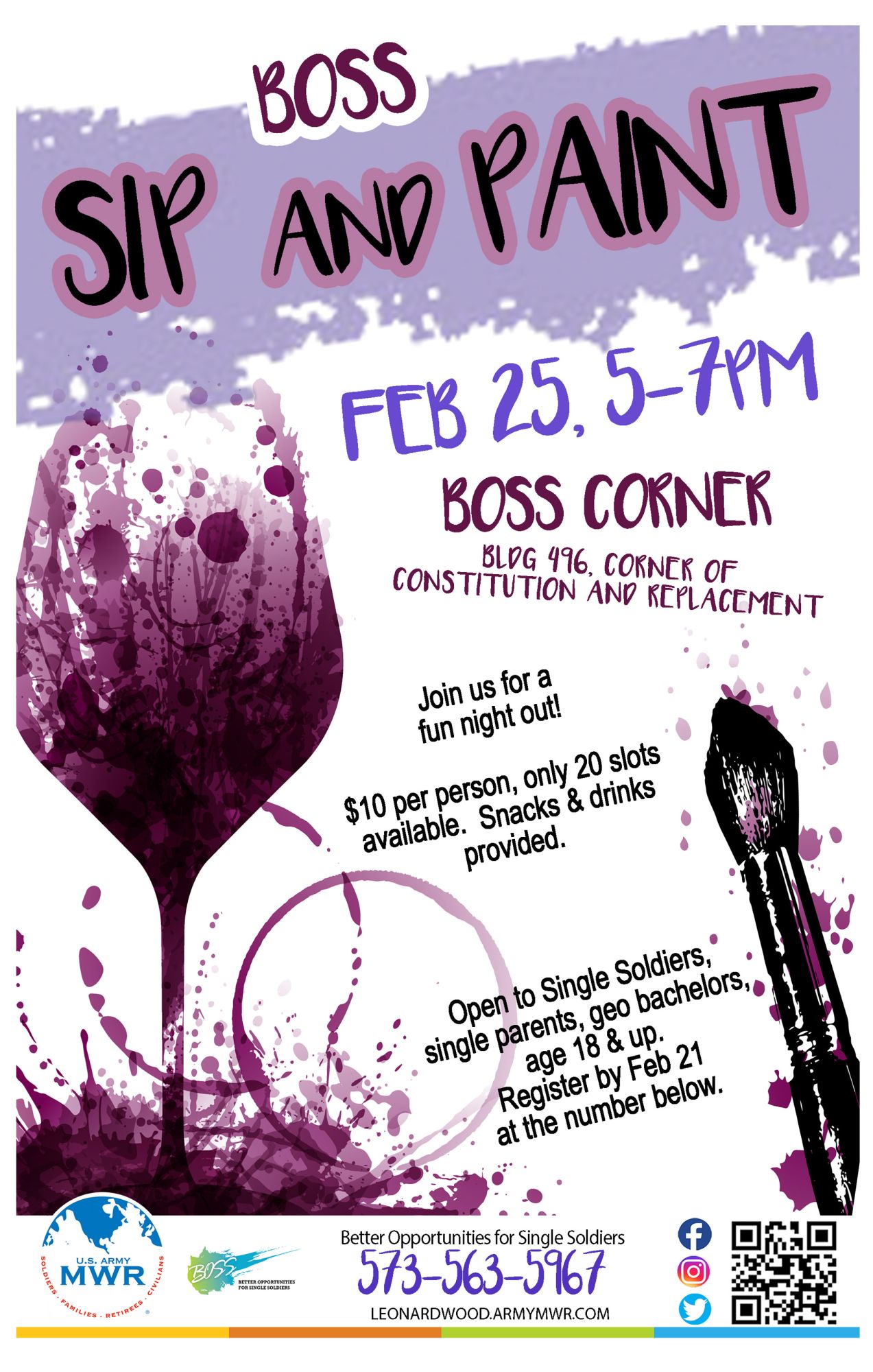 BOSS Sip & Paint will be held at the BOSS Corner.