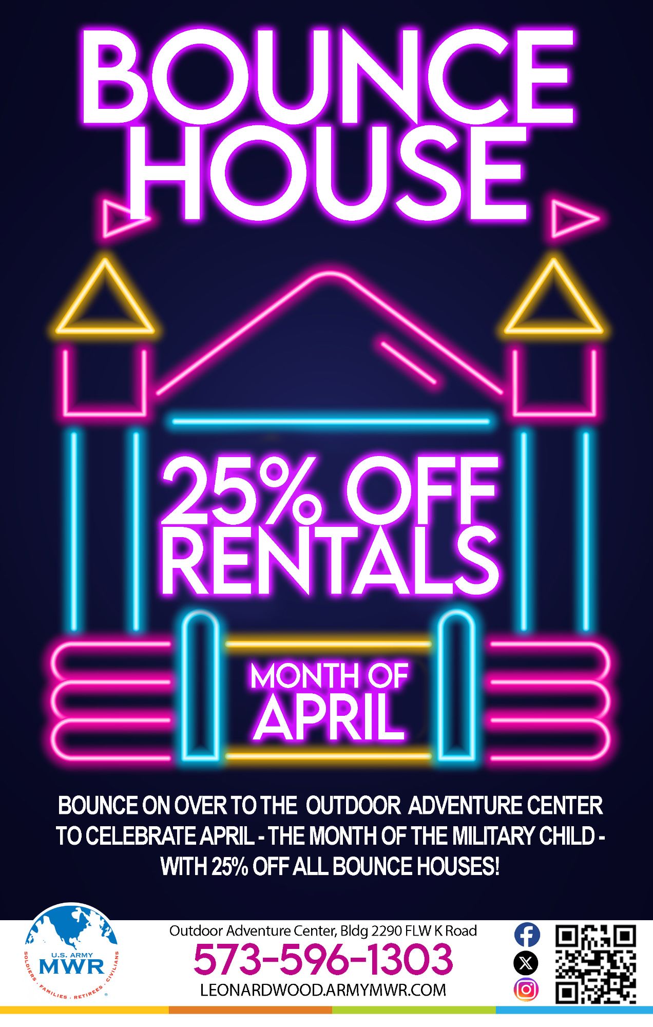 Bounce on over to Outdoor Adventure Center to celebrate Month of the Military Child with 25% off all bounce house rentals!