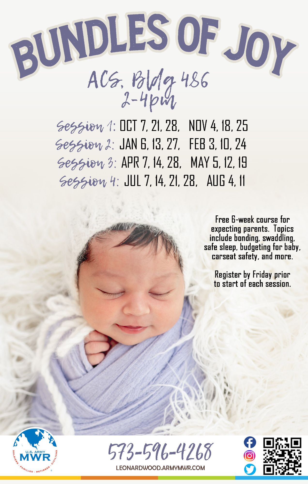 Join us at ACS for Bundles of Joy! This 6-week course is for expecting parents and will cover various topics including: bonding, swaddling, safe sleep, budgeting for baby, carseat safety, and more.