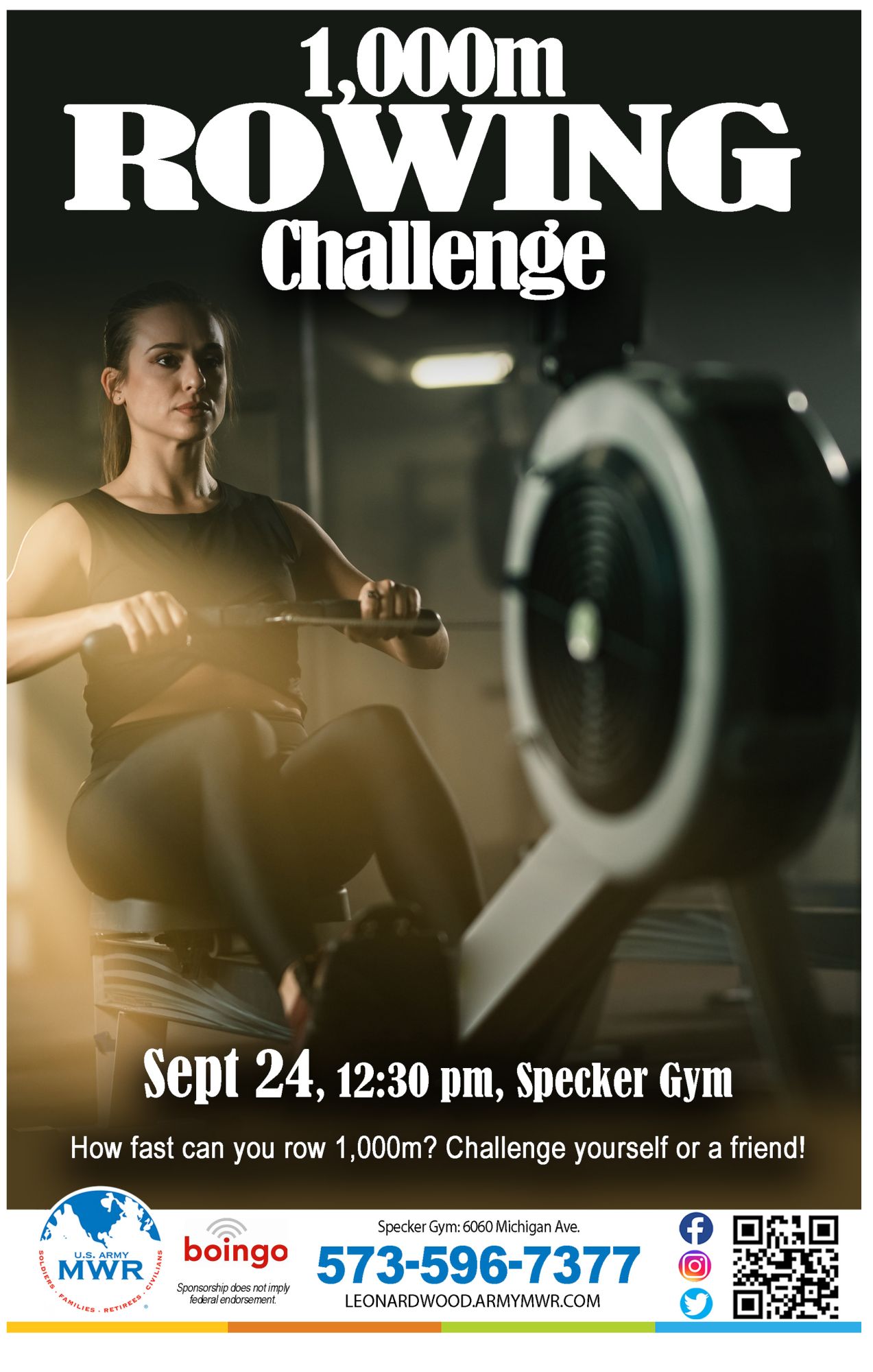 The 1,000m Rowing Challenge will be held at Specker Gym.