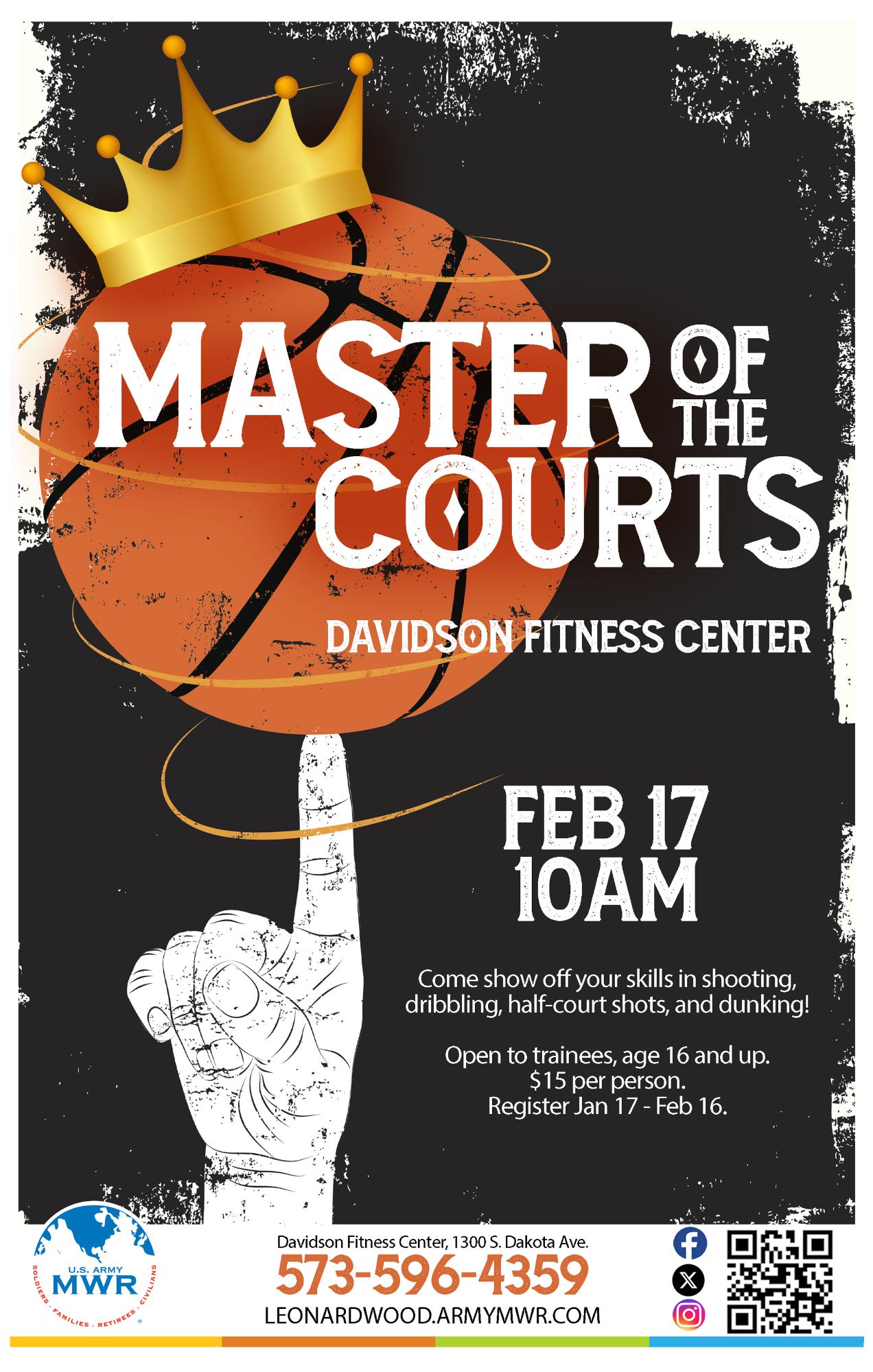 Are you the Master of the Courts? Come to Davidson Fitness Center to show off your skills in shooting, dribbling, half-court shots, and dunking!