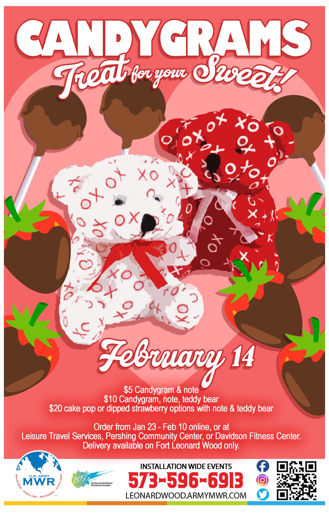 Candygrams will be delivered on Fort Leonard Wood ONLY on 14 February.