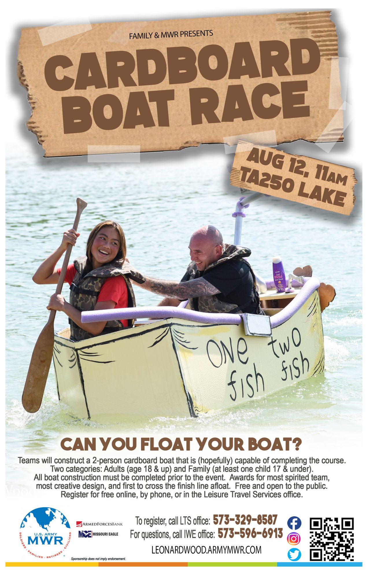 Register Now!Can you float your boat? Our annual Cardboard Boat Race will be held at TA 250 Lake.