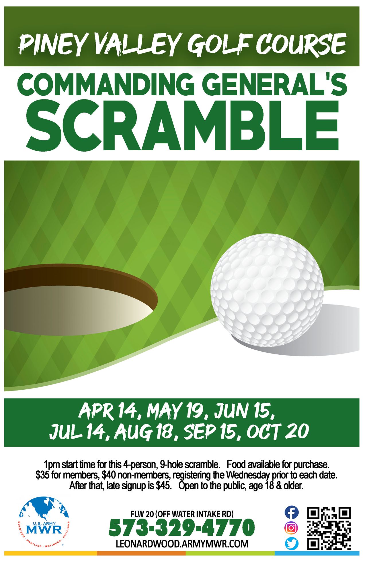 Join Piney Valley Golf Course for their Commanding General's Scramble the following dates: