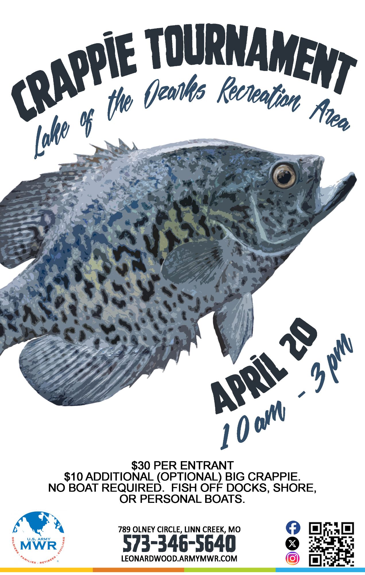 Join us at the Lake of the Ozarks Recreation Area (LORA) for our annual Crappie Tournament on 23 March and 20 April.