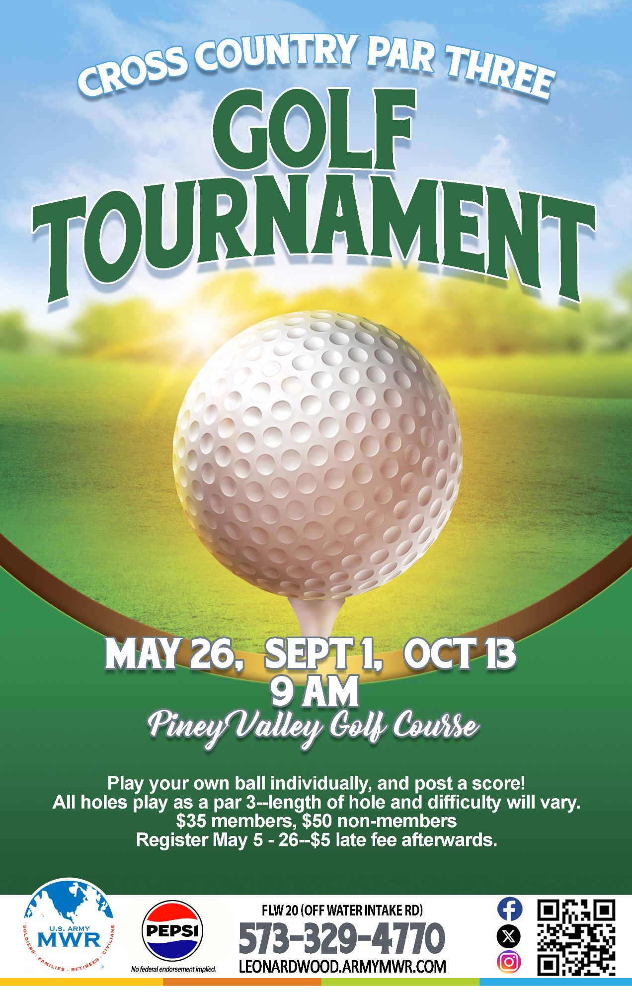 The Cross Country Par 3 Golf Tournament will be held at Piney Valley Golf Course.