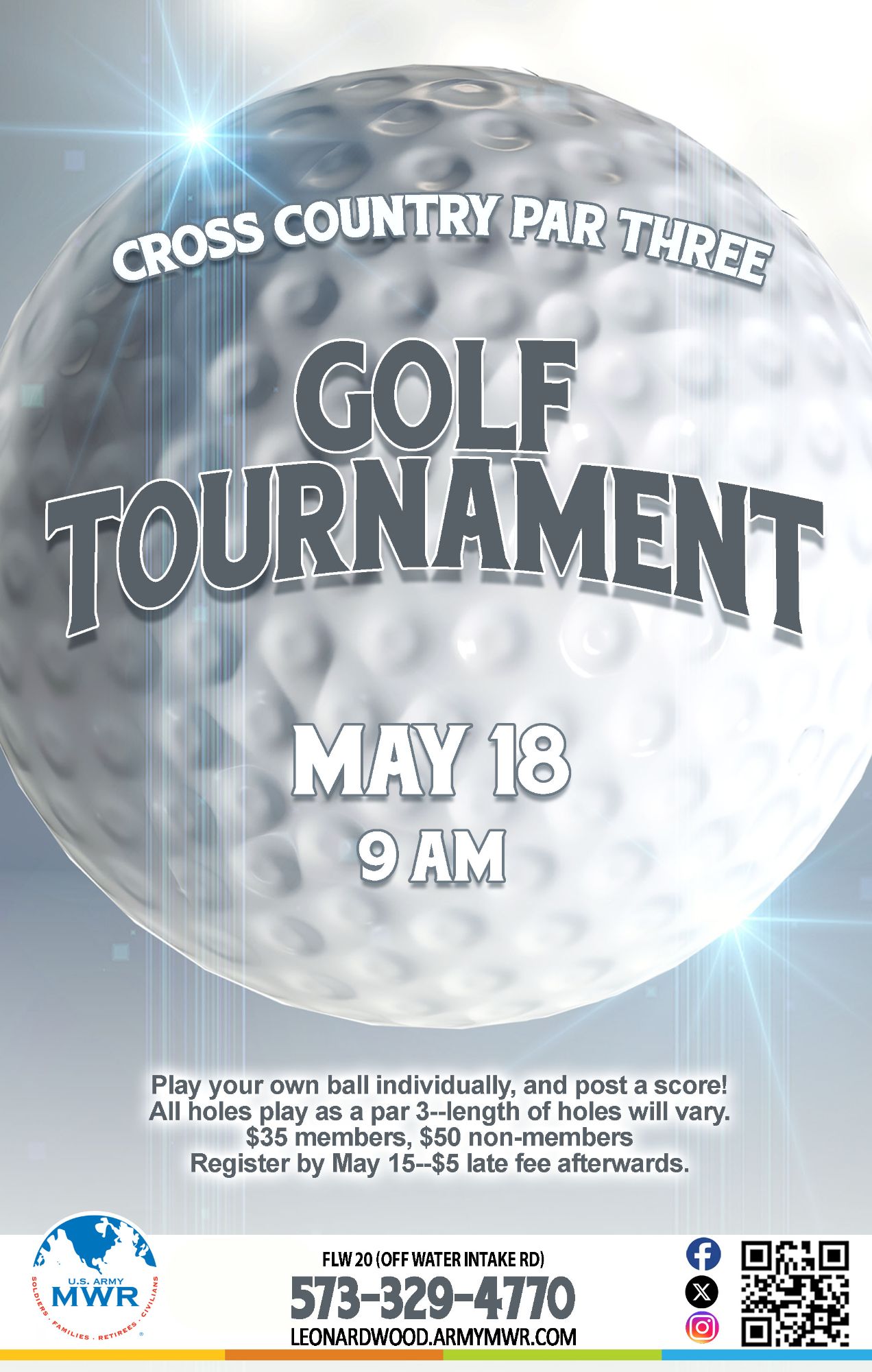Play your own ball individually and post a score! All holes play as a par 3 - length of holes will vary.