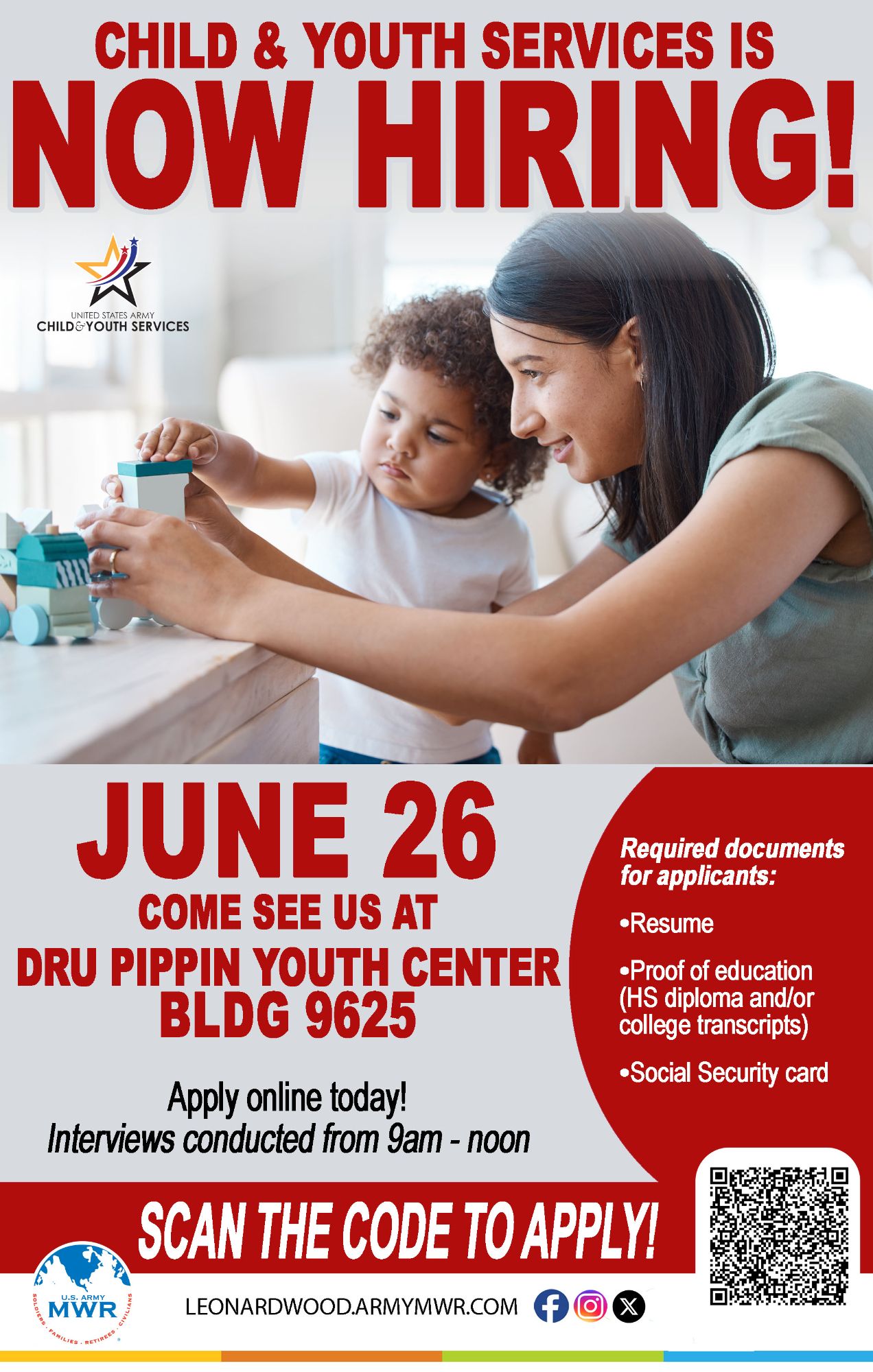 The Hiring Fair will be held at Dru Pippin Youth Center.