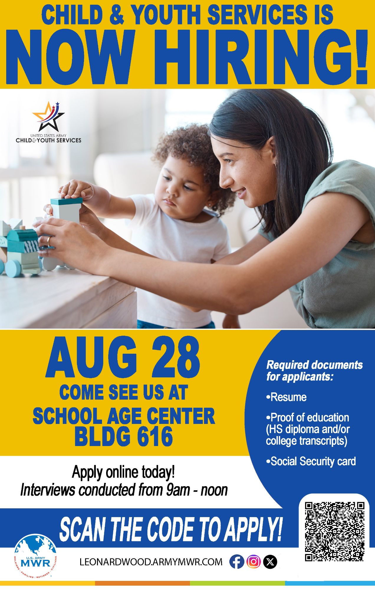 The Hiring Fair will be held at the School Age Center.
