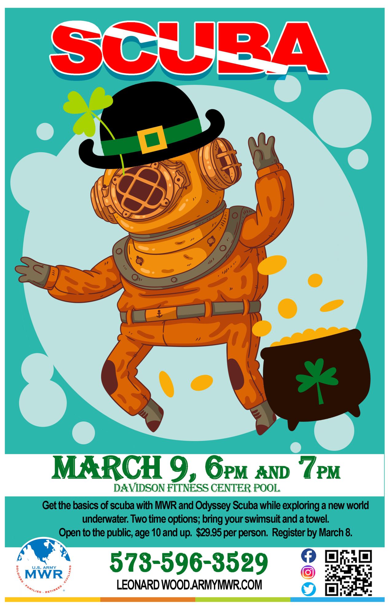 Get the basics of scuba with MWR and Odyssey Scuba while exploring a new world underwater! Just bring your swimsuit and towel!