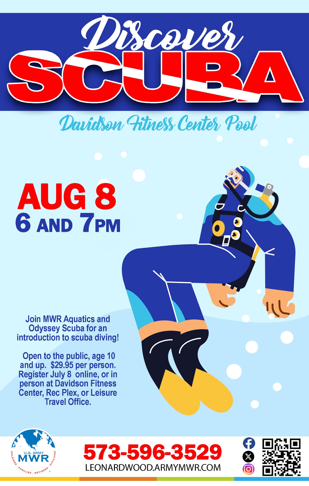 Join MWR and Odyssey Scuba to learn the basics of Scuba at Davidson Fitness Center Indoor Pool.