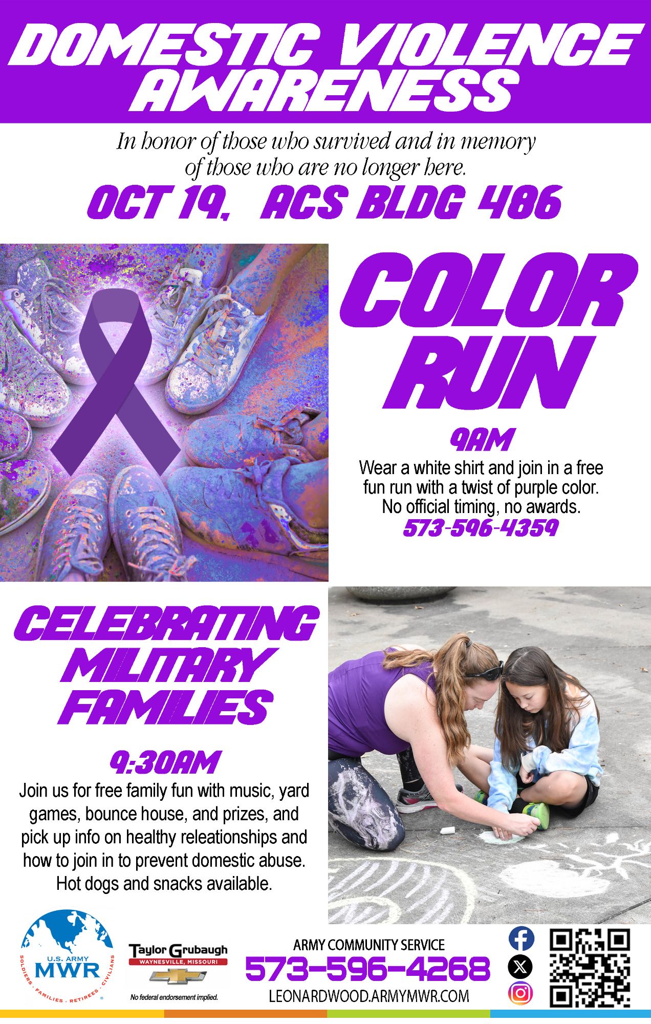 Join us at Army Community Service for Domestic Violence Awareness Events in honor of those who survived and in memory of those who are no longer here.