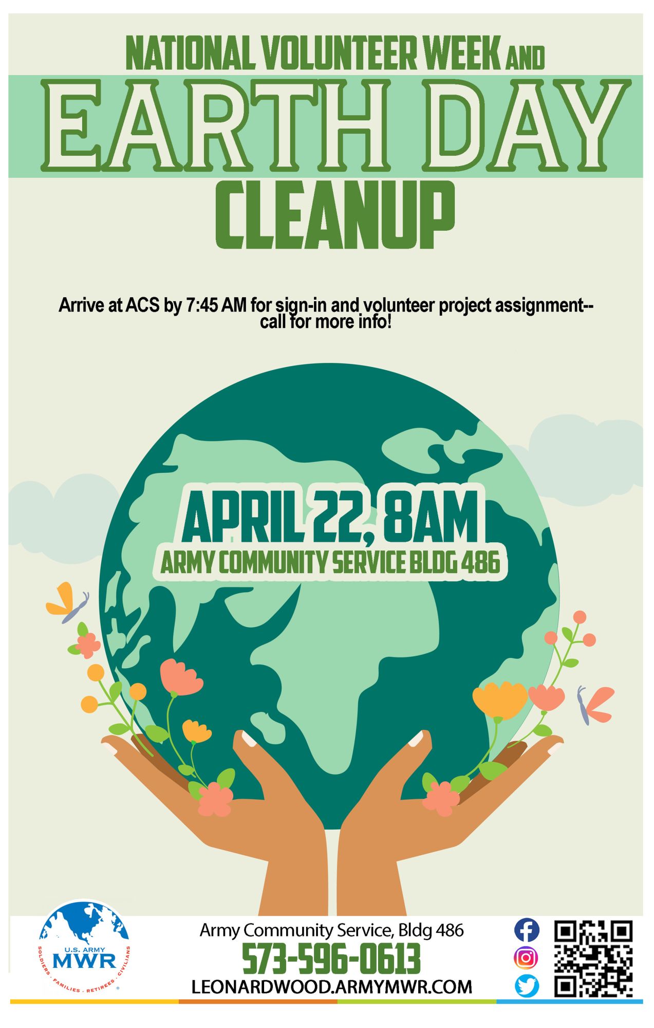 Celebrate National Volunteer Week & Earth Day by helping us clean up around Fort Leonard Wood!