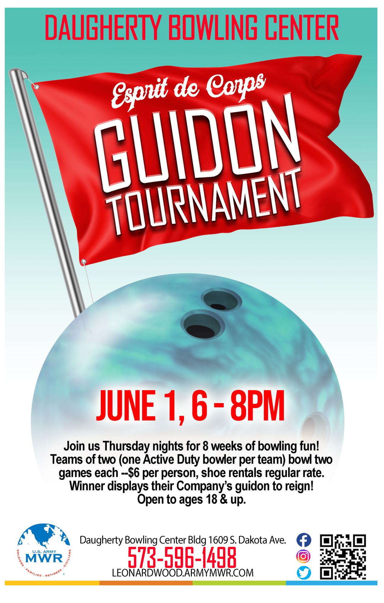 The Esprit de Corps Guidon Tournament begins 1 June at Daugherty Bowling Center.