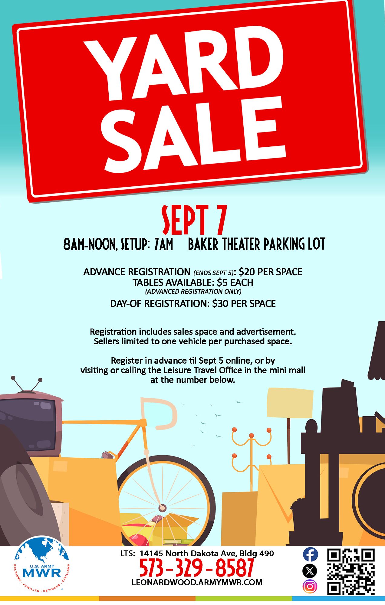 The MWR Fall Yard Sale will be held in the Baker Theater Parking Lot.