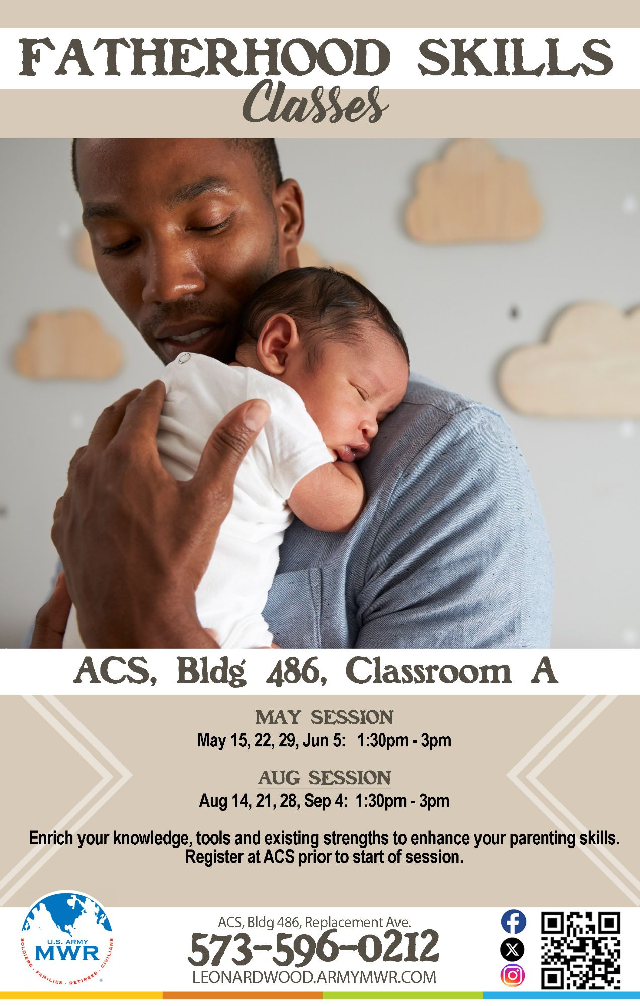 Fatherhood Skills Classes are held at Army Community Service in Classroom A.