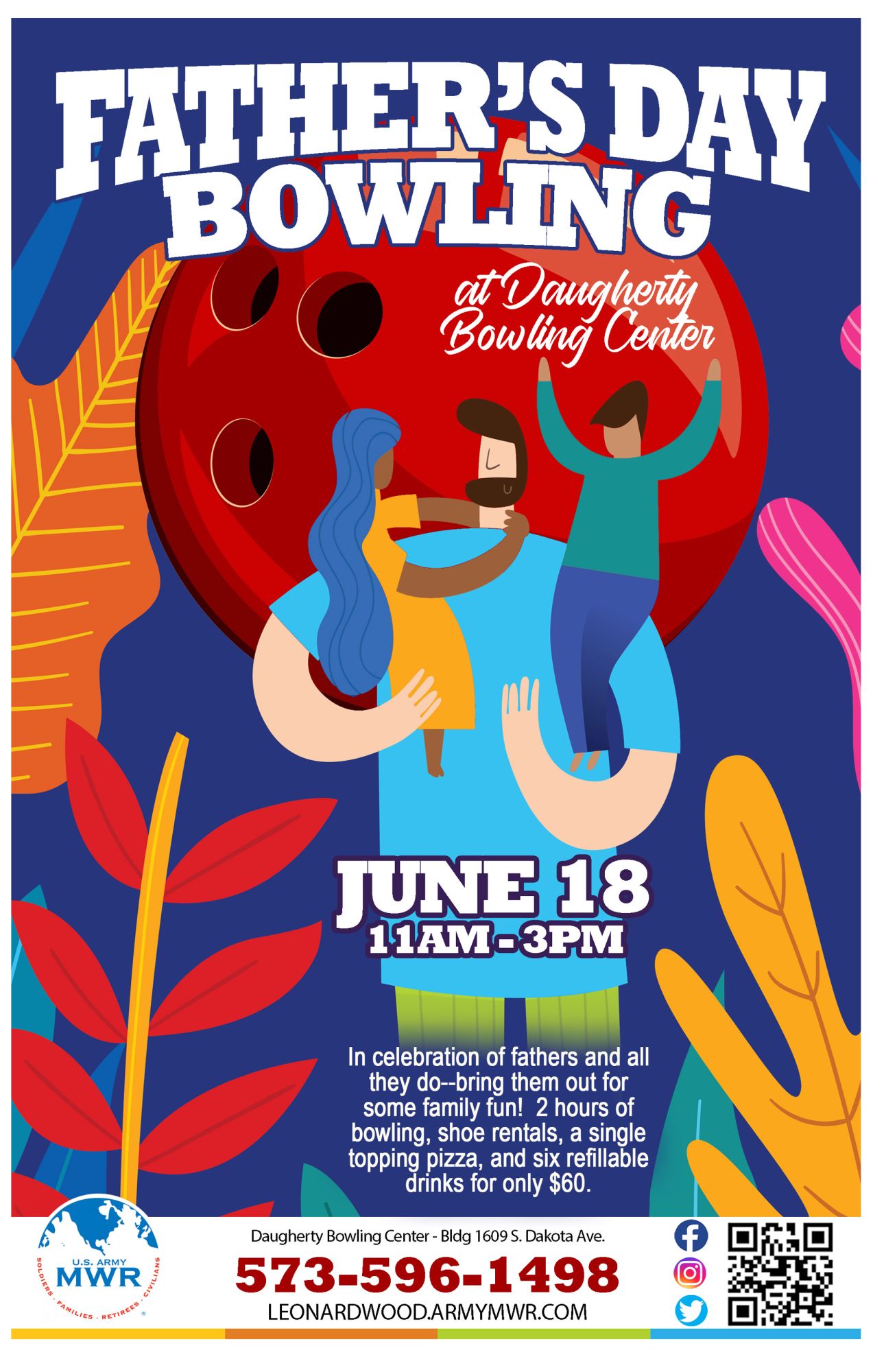 In celebration of fathers and all they do - bring them out to Daugherty Bowling Center for some family fun!