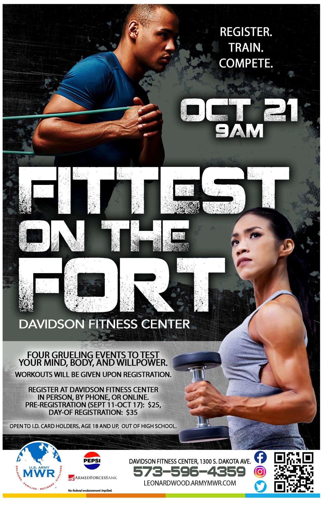 Join us at Davidson Fitness Center to test your mind, body, & willpower throughout four grueling events in Fittest on the Fort!