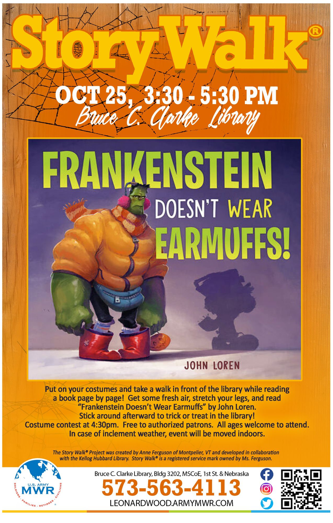 Put on your costumes and take a walk with us while reading a book page by page! The Halloween StoryWalk will be held at Bruce C. Clarke Library.