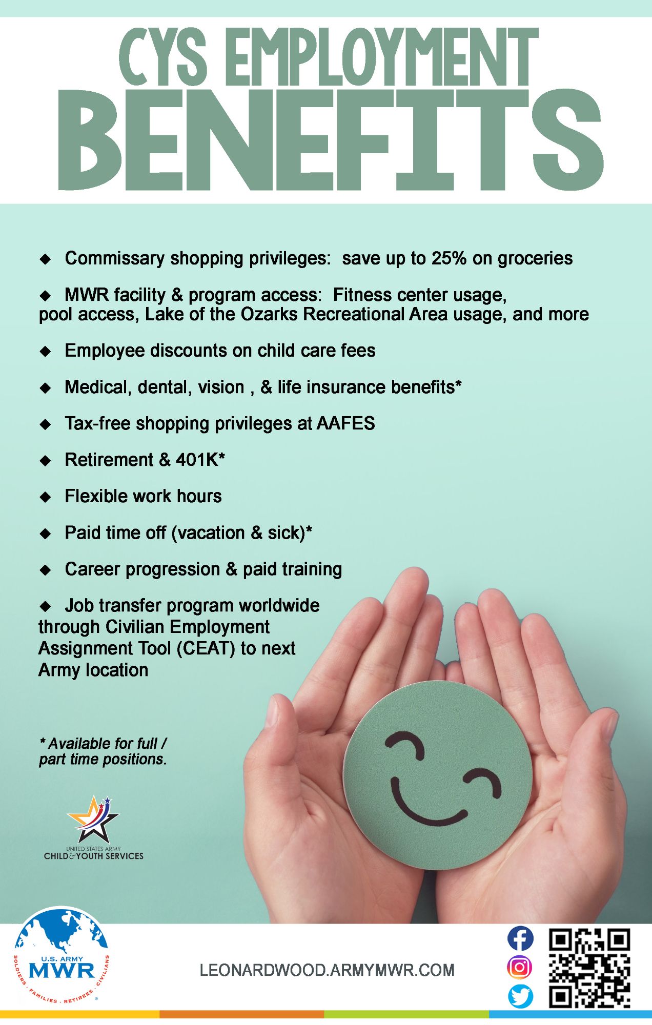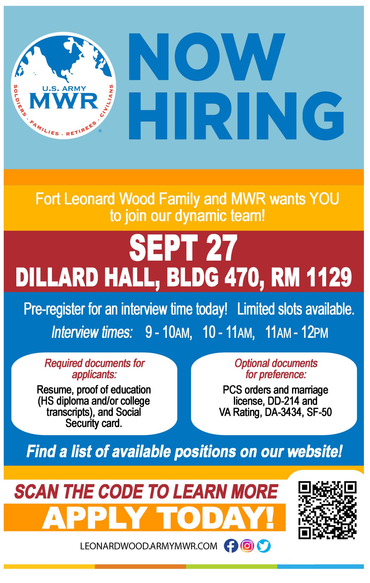 Register Now!Fort Leonard Wood Family & MWR wants YOU to join our dynamic team!