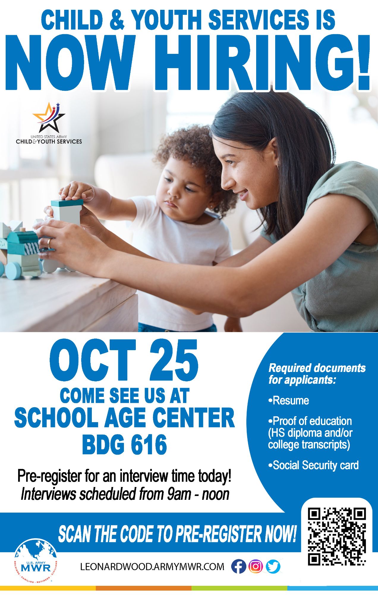 The Hiring Fair will be held at the School Age Center, Bldg 616.