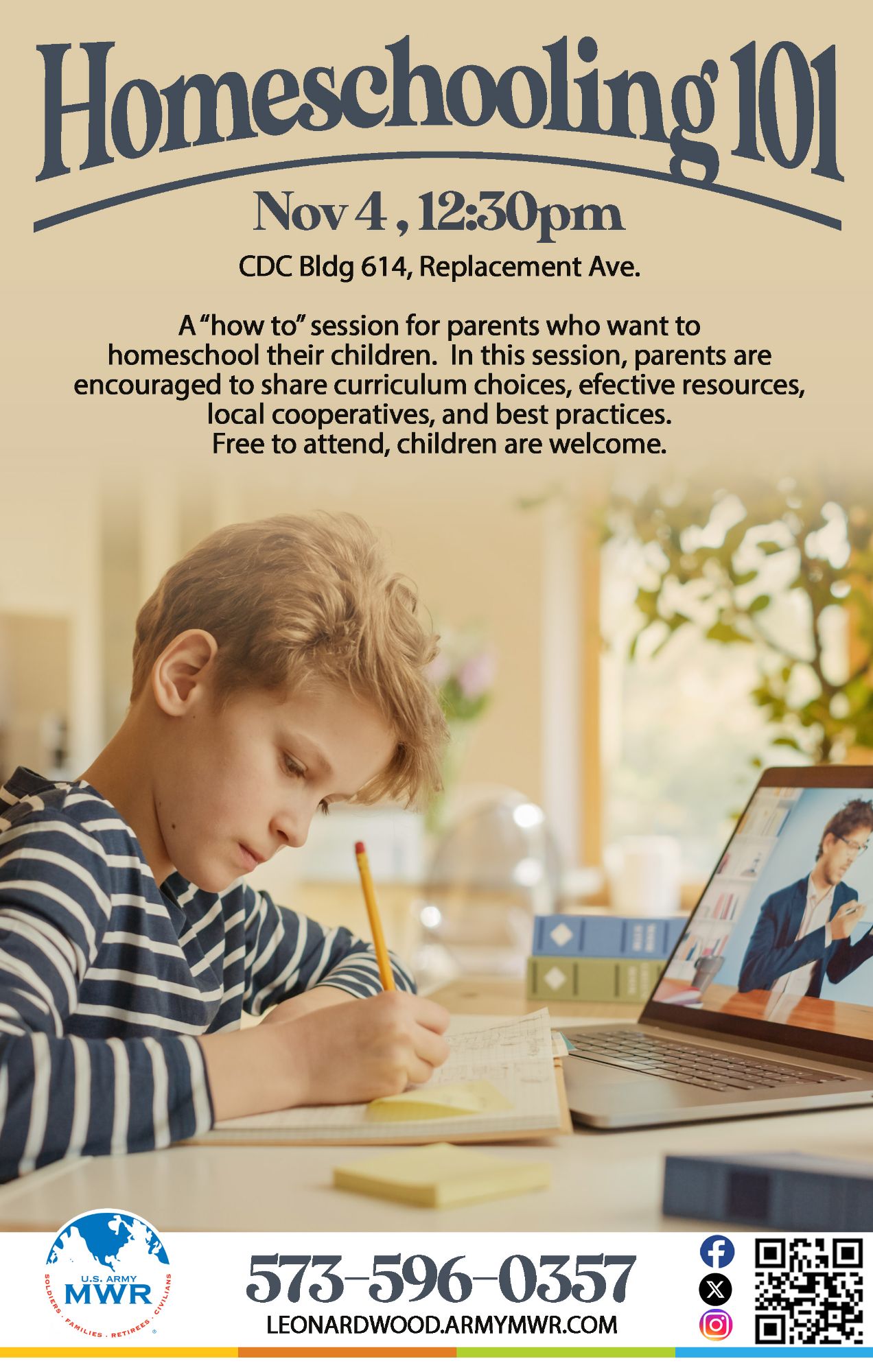 Homeschooling 101 will be held in CDC 614.