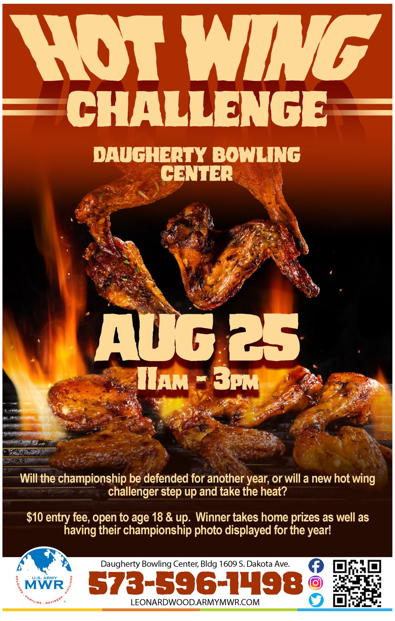Join Daugherty Bowling Center for their Hot Wing Challenge starting at 11 am! Will the championship be defended for another year, or will a new hot wing challenger step up and take the heat?