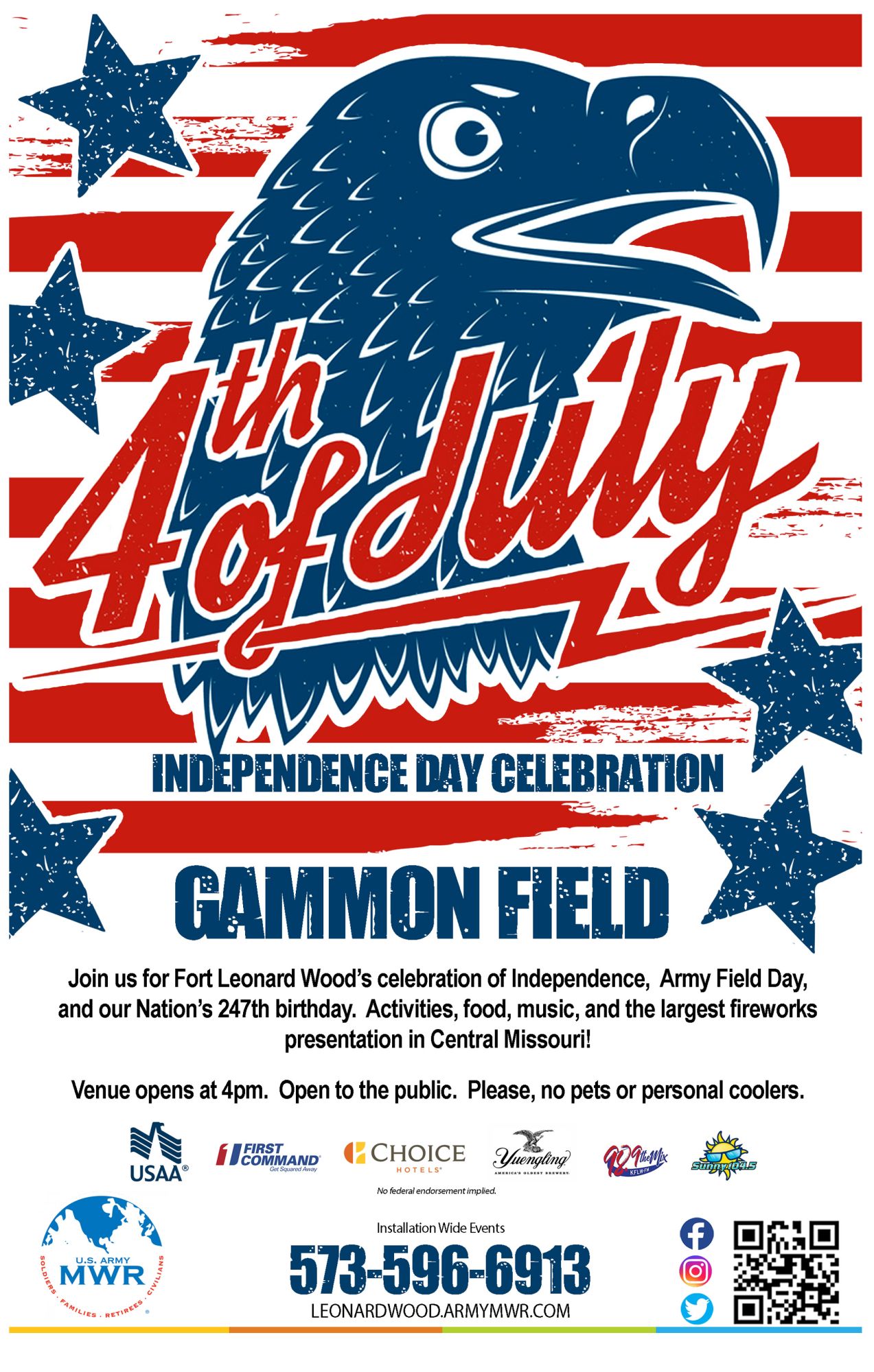Join us for Fort Leonard Wood's Independence Day Celebration, Army Field Day, and our Nation's 247th Birthday! Event will be held at Gammon Field.
