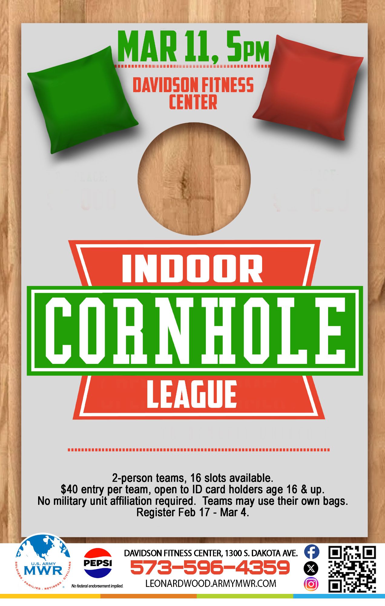 Join us at Davidson Fitness Center for the Indoor Cornhole League!