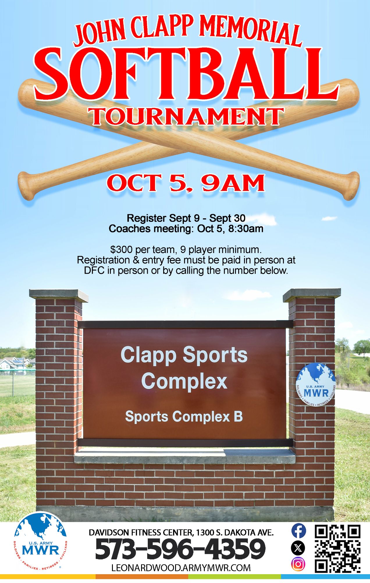 Join us at the Clapp Sports Complex for the John Clapp Memorial Softball Tournament!
