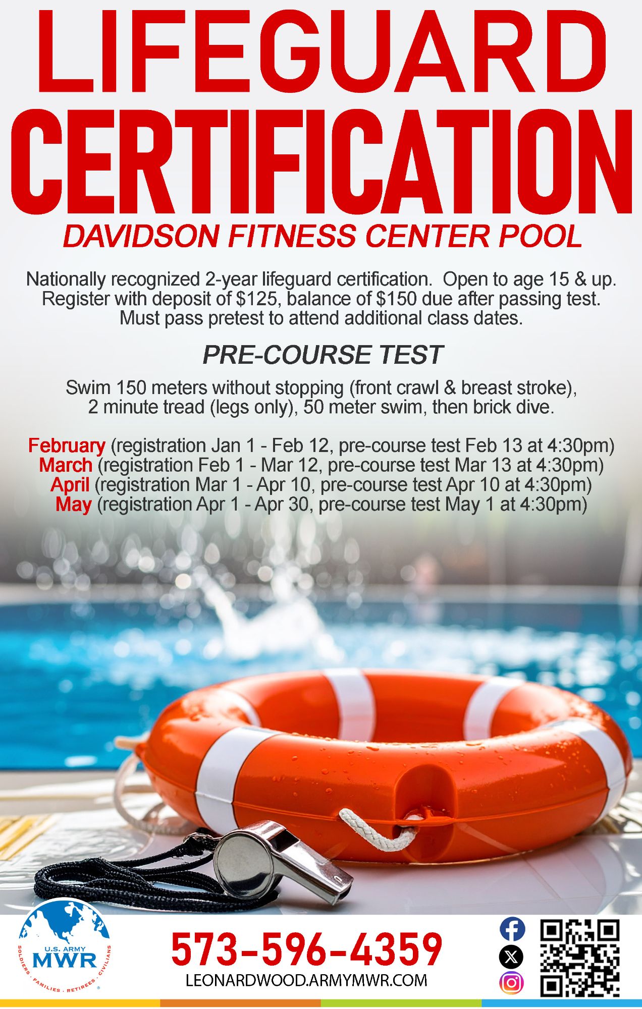 Join us at Davidson Fitness Center Indoor Pool for Lifeguard Certification!