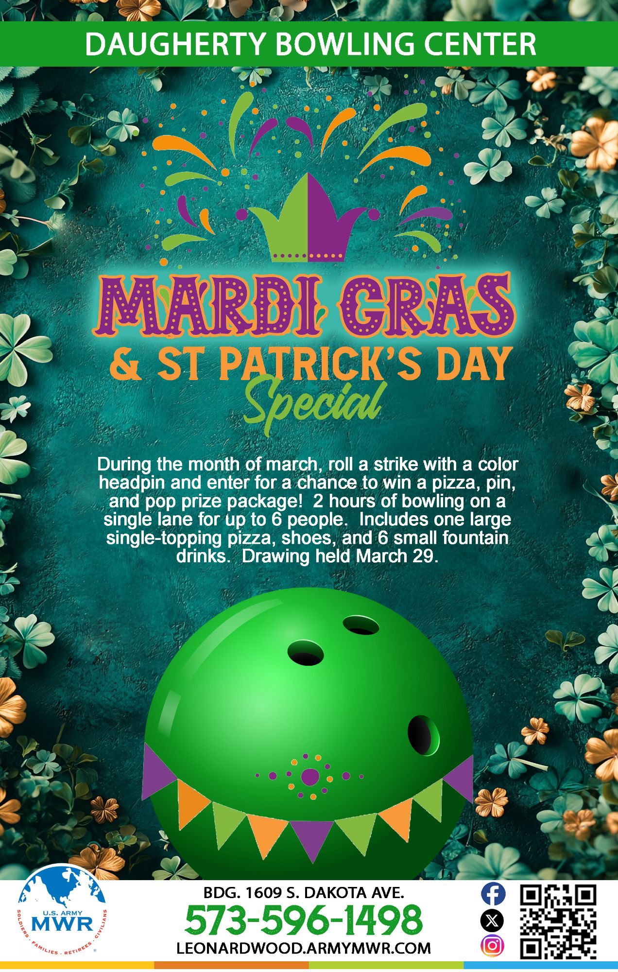 May the luck of the Irish be with you as you let the good times roll at Daugherty Bowling Center!