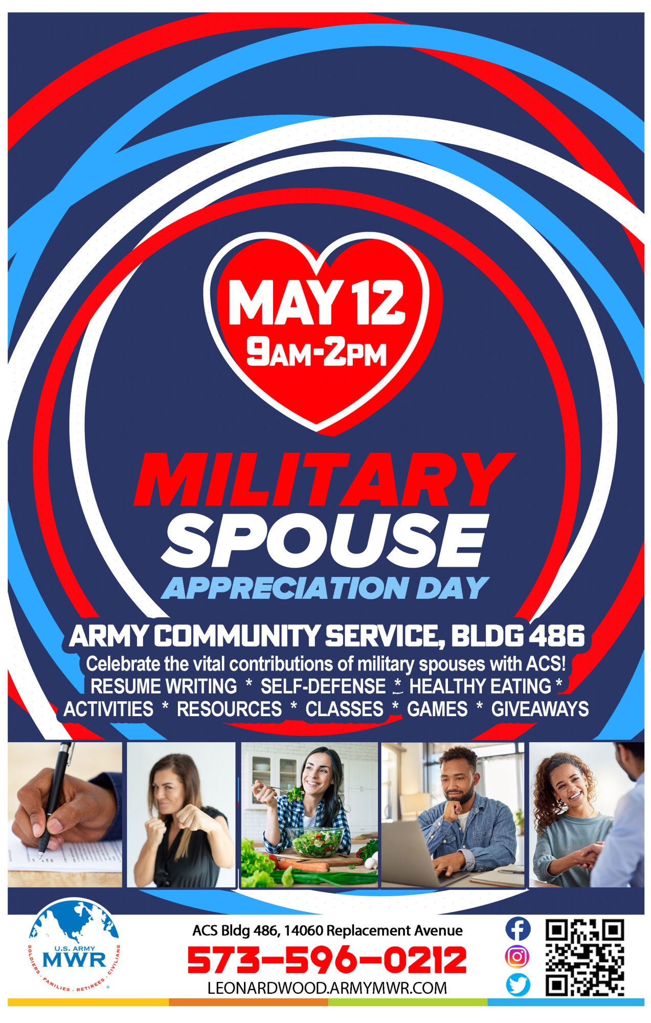Military Spouse Appreciation Day will include many fun activities, classes, games & giveaways! You can also gain valuable resources as well as learn more about resume writing, self-defense, and healthy eating.