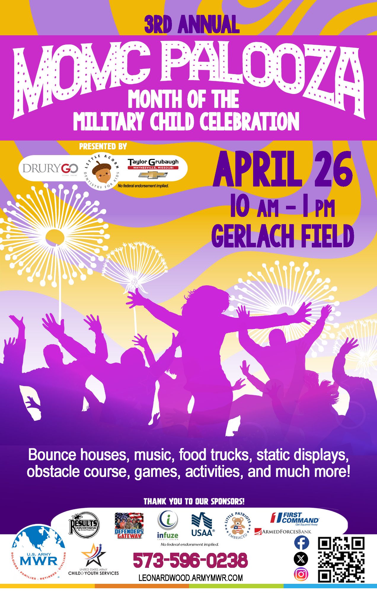 Celebrate the Month of the Military Child with bounce houses, music, food trucks, static displays, obstacle course, games, activities, and much more!