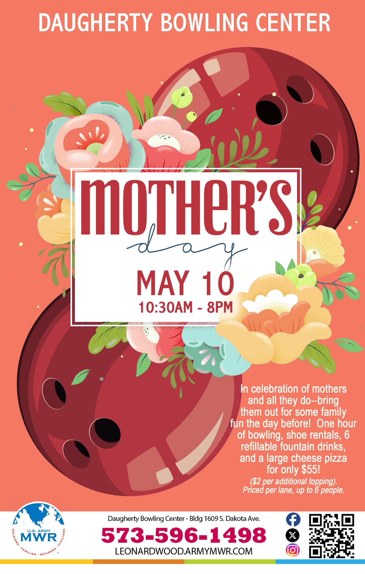 In celebration of mothers and all they do - bring them to Daugherty Bowling Center for some family fun!