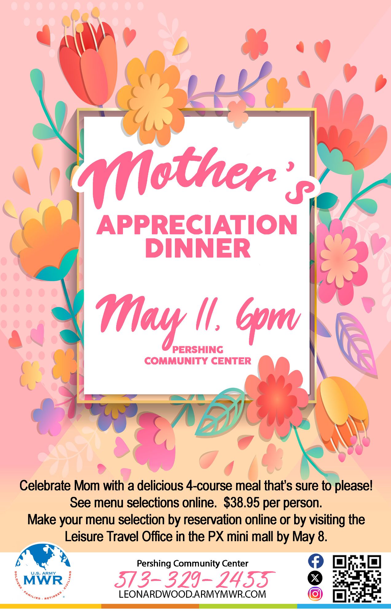 Register Now!Celebrate Mom with a delicious 4-course meal that's sure to please!
