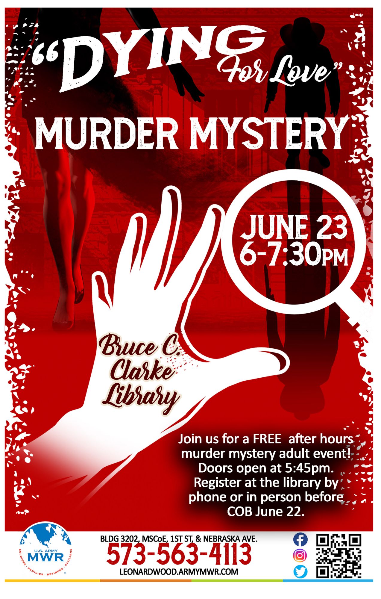 Join us for this after hours murder mystery adult event - "Dying for Love."