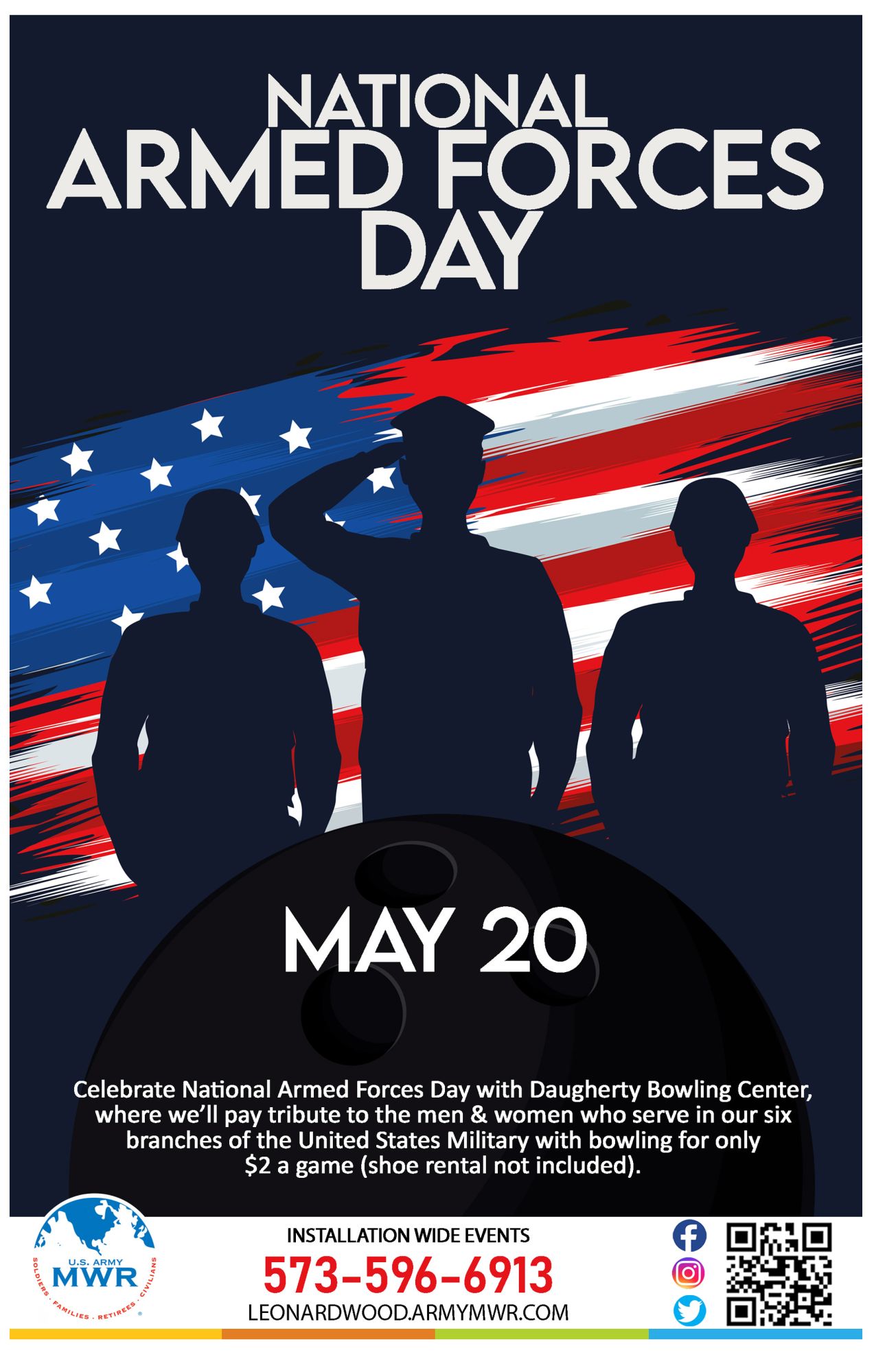 Celebrate National Armed Forces Day with Daugherty Bowling Center! On this day, we pay tribute to the men & women who serve in our six branches of the United States Military!