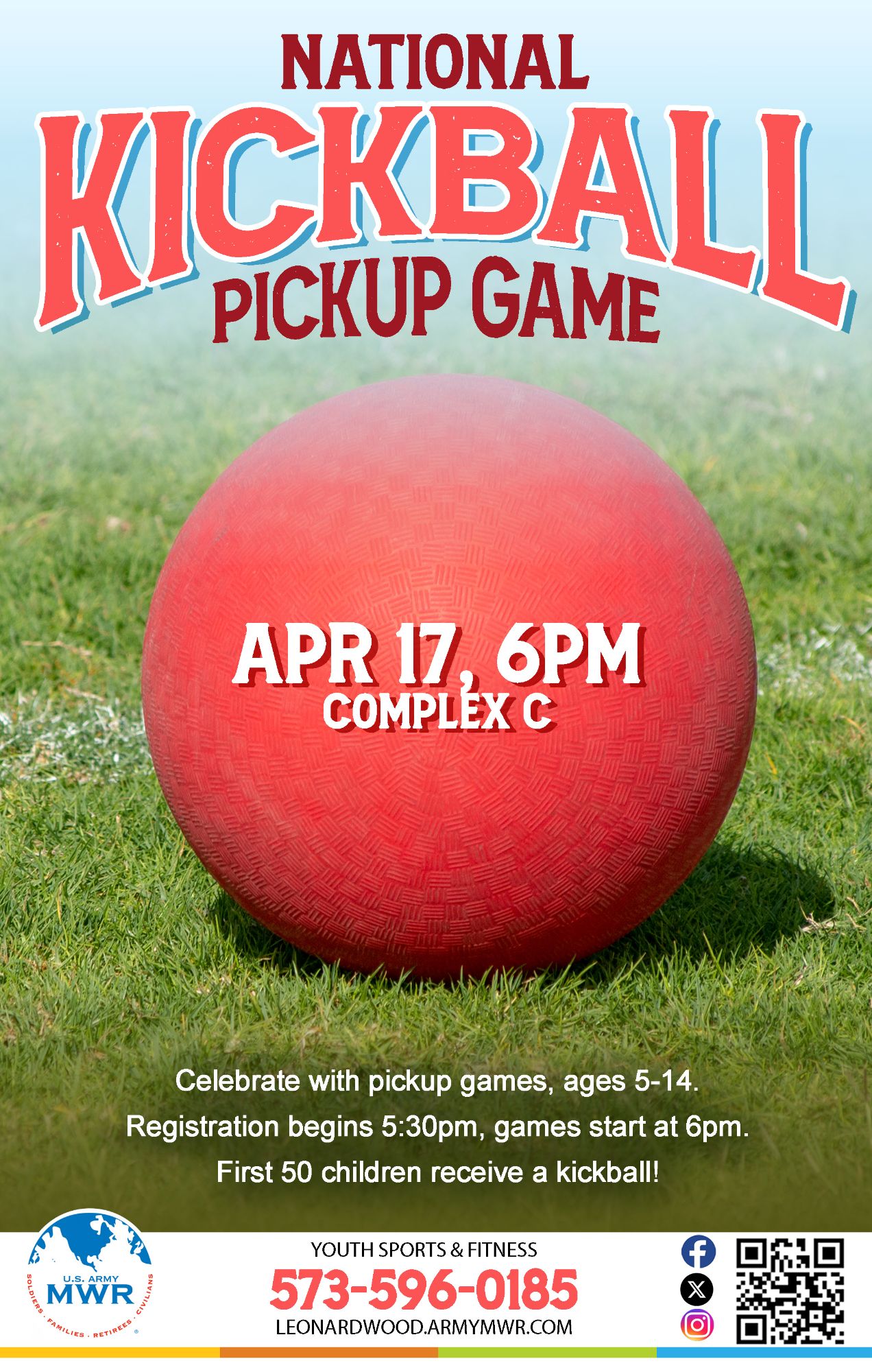 The National Kickball Pickup Game will be held at Sports Complex C.