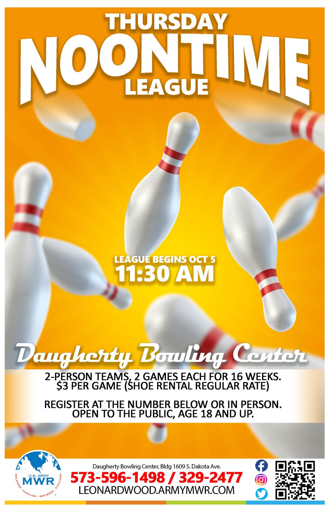 Register at Daugherty Bowling Center or by calling +1 (573)596-1498 or +1 (573)329-2477.